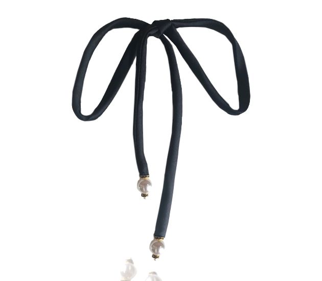 FIO DE CREPE PRETO COM DUAS PÉROLAS DE RESINA E ENTREMEIOS DE CRISTAL NAS PONTAS