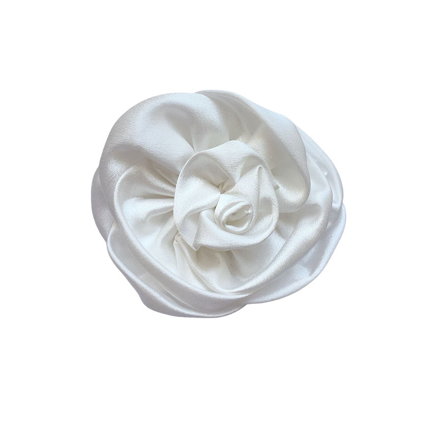 FLOR NA COR BRANCA, COM TECIDO DE CREPE ACETINADO. APLICADA EM FIVELA