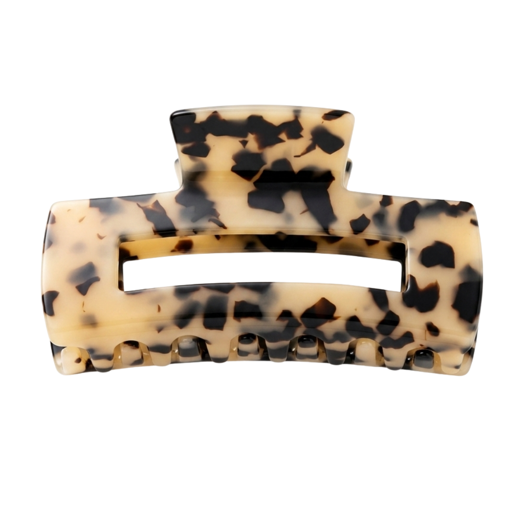 PRESILHA DE CABELO ESTILO PIRANHA - MAXI QUADRADA EM ACETATO COM ESTAMPA BEGE E PRETO - TARTARUGA
